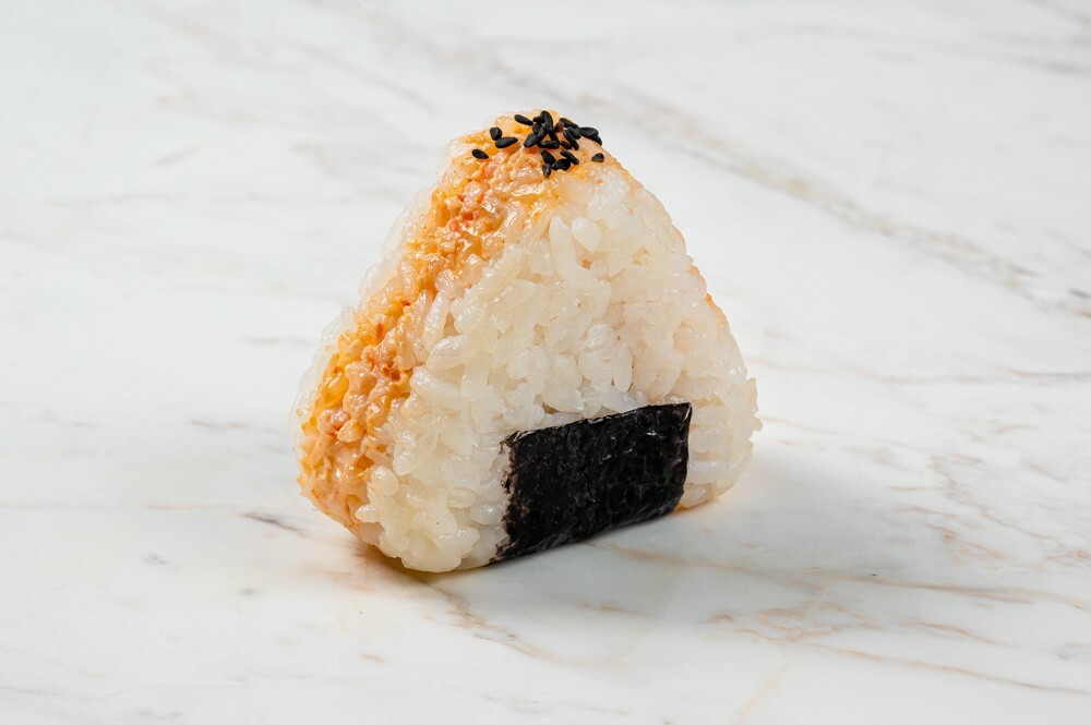 Японский рис, водоросли нори, отварная креветка, соус спайси.,черный кунжут.