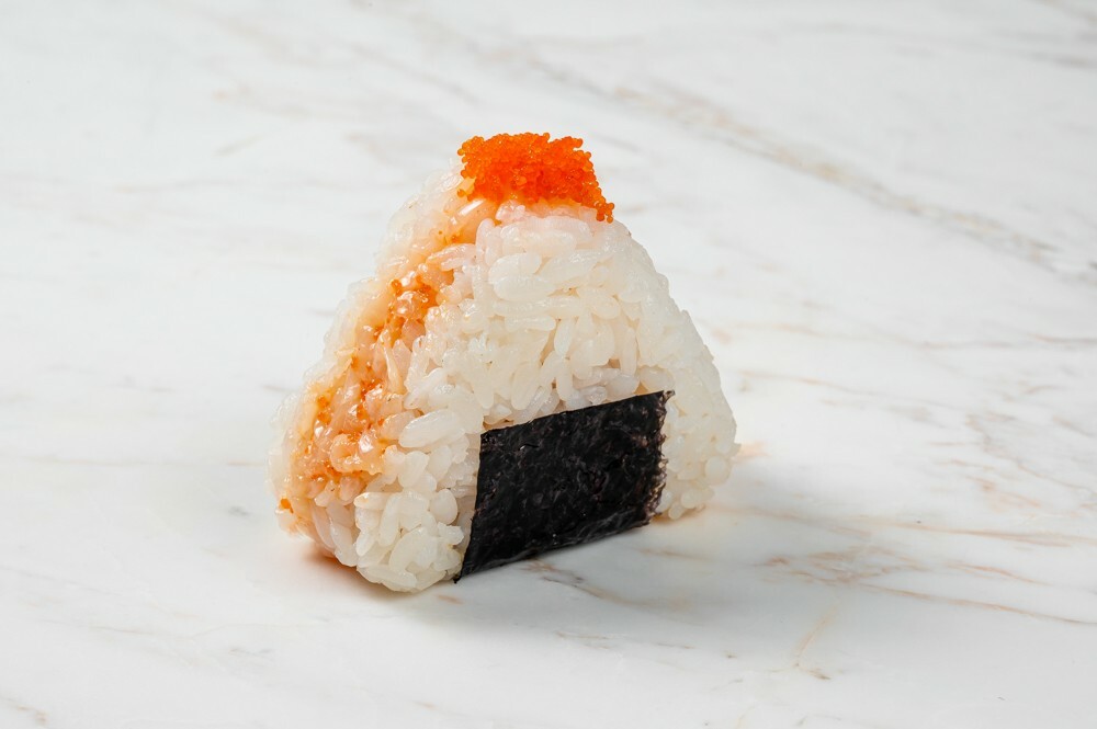 Японский рис, водоросли нори, икра тобико, гребешок,соус спайси.